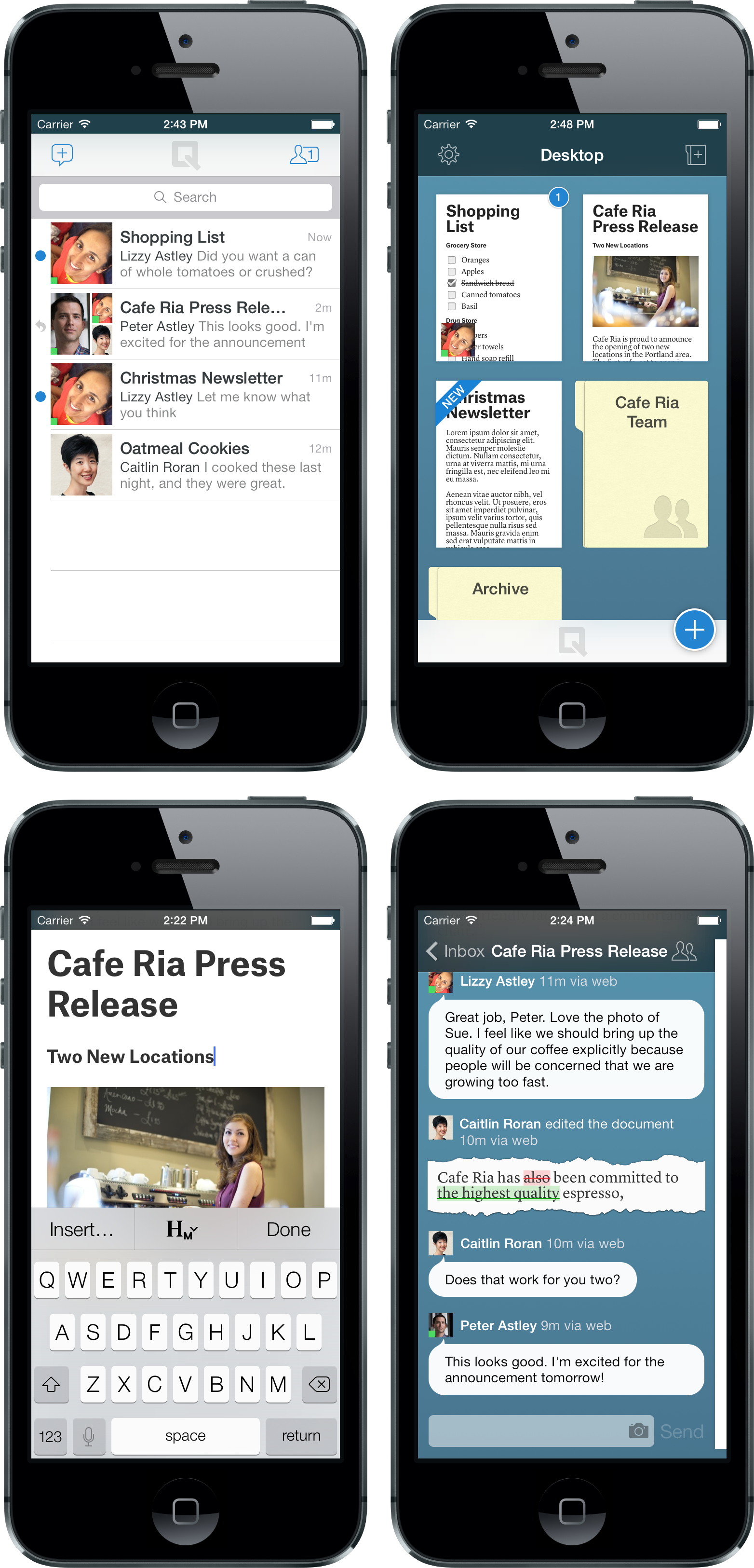 As a part of this update, we made the whole app faster and smoother — even for older versions of iOS. We hope you enjoy the update, and please continue sending us feedback via the Quip Help Center.