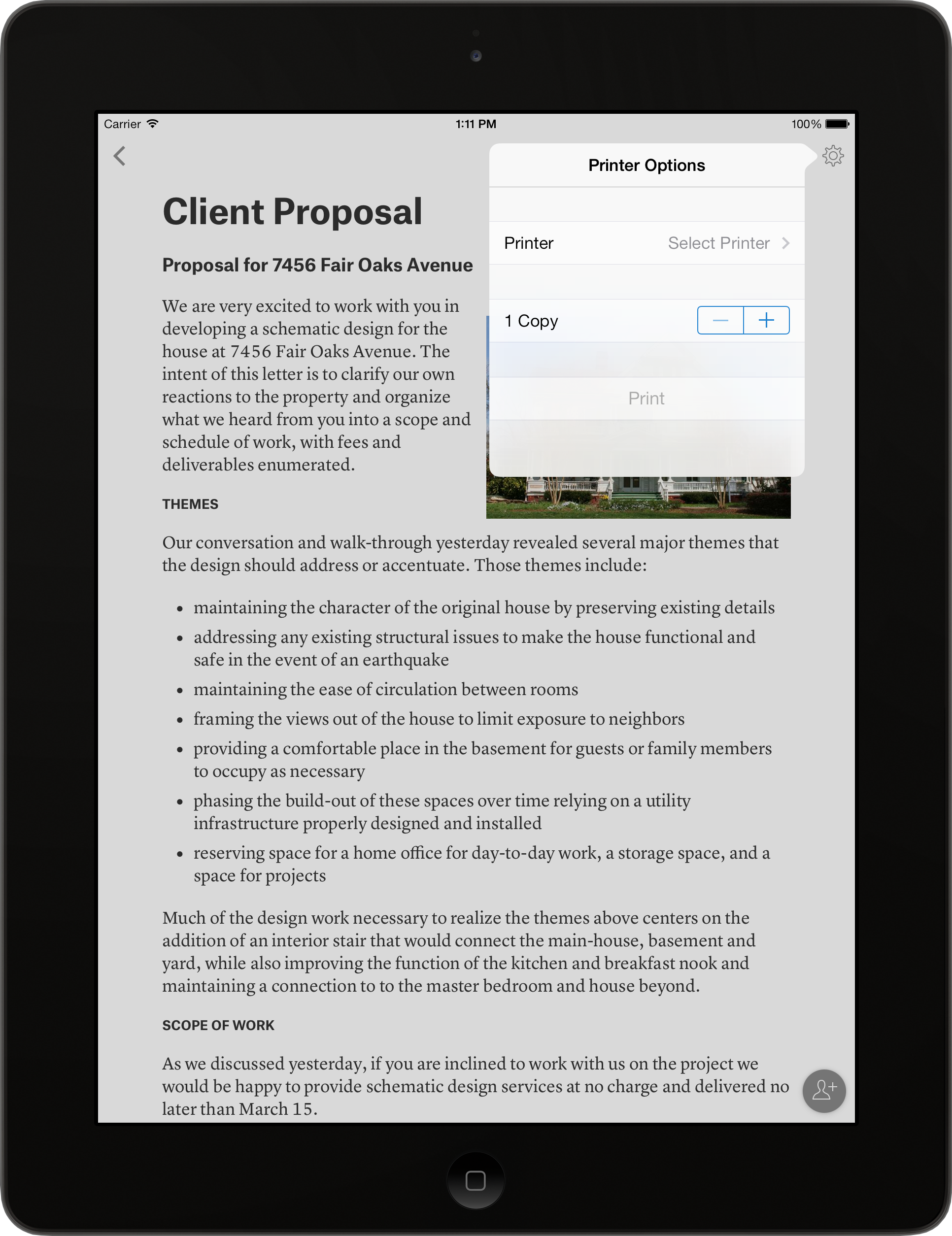Quip now supports AirPrint, so you can print wirelessly to any AirPrint-capable printer without any setup.